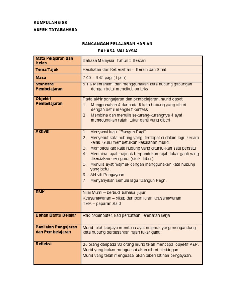 . Nov 27 2017 CONTOH RPH BAHASA MELAYU TINGKATAN 1 ASPEK SENI. RANCANGAN PENGAJARAN HARIAN TAHUN 2 1.